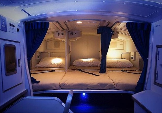 Còn đây là nơi các thành viên phi hành đoàn trên chiếc máy bay Airbus A350 nghỉ ngơi trong lúc đa phần hành khách đã đi vào giấc ngủ.