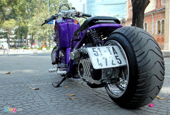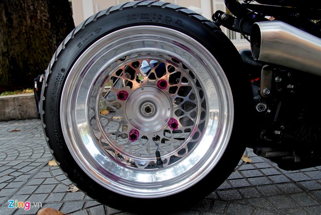 Chiếc xe nguyên bản chỉ được giữ lại phần khung và máy, bánh trước và sau được thay mới hoàn toàn, phuộc được hạ thấp. Chủ nhân chiếc xe cho biết những món đồ chơi trên xe được anh đặt từ Mỹ và nhờ người chuyển về. Vì vừa độ vừa chờ phụ tùng nên thời gian hoàn thành chiếc xe này khá lâu.