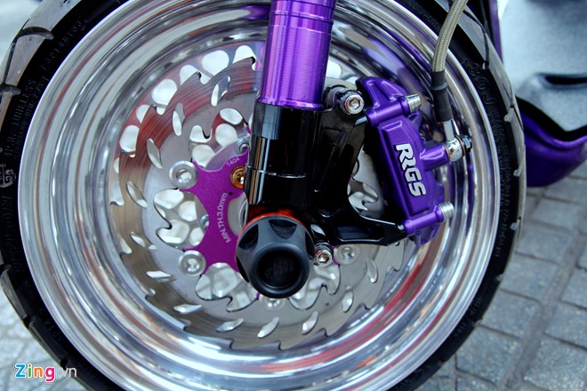 Phía trước được trang bị heo dầu RGS, đĩa phanh răng cưa cùng vành nhôm CNC.