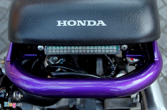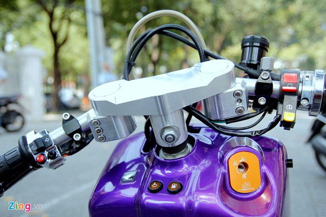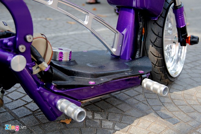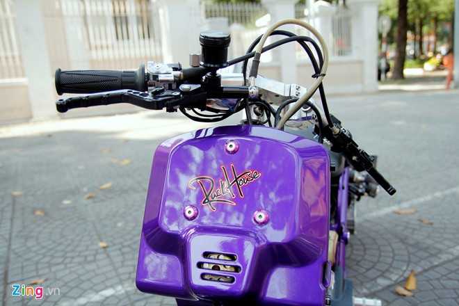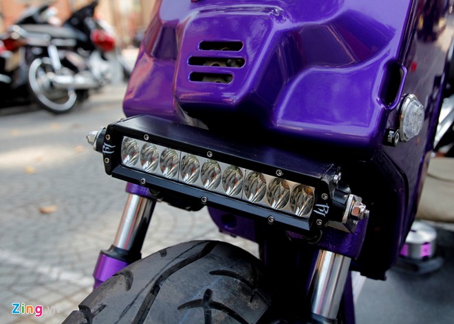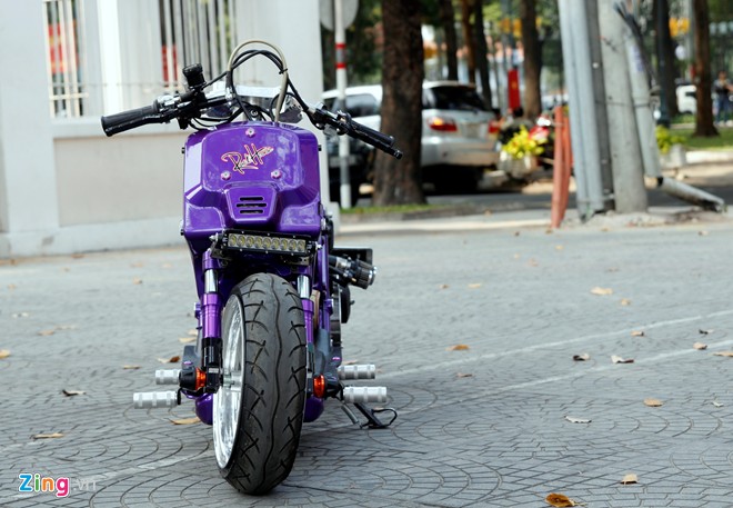 Zoomer được sơn màu tím khá bắt mắt. Vì đây là dòng xe dưới 50 phân khối nên không cần bằng lái.