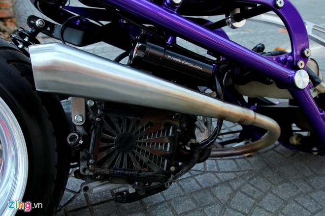 Pô xe được gò bằng tay tại Việt Nam, phía trên là bình đừng dầu máy.