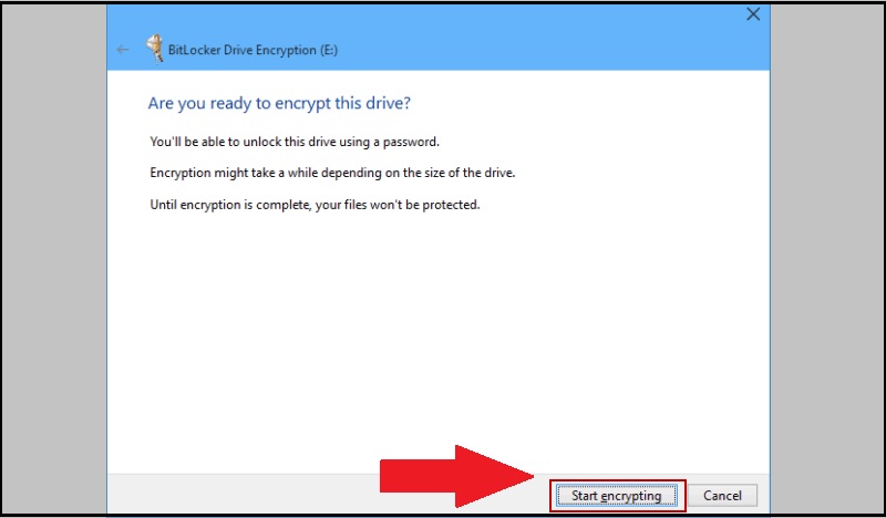Bước 6: Cuối cùng, nhấn chọn Start encrypting để BitLocker bắt đầu thực hiện mã hóa ổ đĩa.