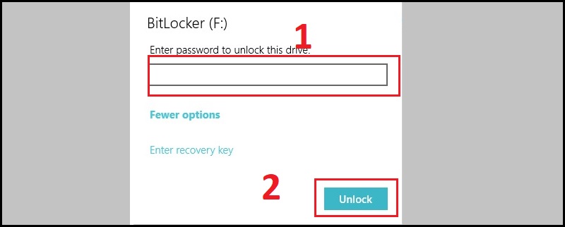 Bước 5: Dán phần mật khẩu dự phòng bạn đã copy ở trên vào giao diện BitLocker > Nhấn nút Unlock.Như vậy ổ đĩa bạn đã trở lại bình thường.