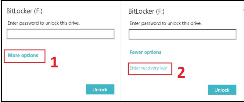 Bước 2: Tại cửa sổ mới, kích chuột chọn More options > Bạn hãy kích chuột chọn Enter recovery key.