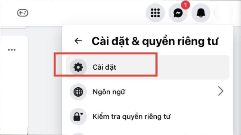 Bước 1: Tại giao diện Facebook bạn chọn vào tài khoản của bạn, sau đó chọn Cài đặt và quyền riêng tư. Ngoài ra, người dùng còn có thể truy cập nhanh vào phần đổi tên qua link: https://www.facebook.com/settings