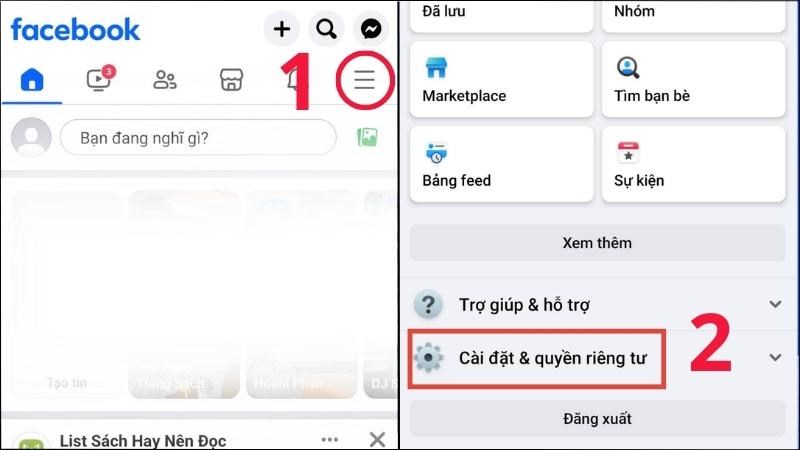 Bước 1: Vào Facebook > Chọn biểu tượng ba dấu gạch > Chọn Cài đặt & quyền riêng tư.