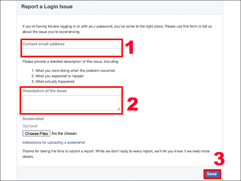 Ở phần Description of the issue, bạn điền như sau: “I lost the SIM phone number used to subscribe to Facebook. So I can not verify my account number over the phone” hoặc bạn cũng có thể tự mô tả trình trạng của mình bằng văn bản tương tự.