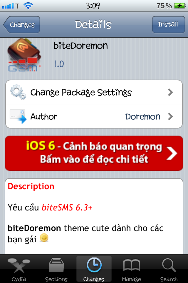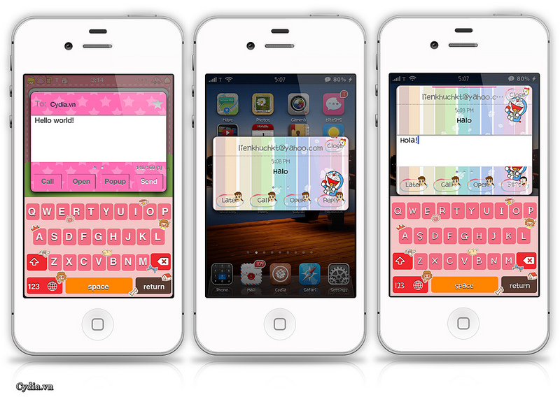 - biteDoremon dành cho cả iPhone 3GS/4/4S sử dụng biteSMS 6.3 (biteSMS 6.3 mới hỗ trợ đổi theme)