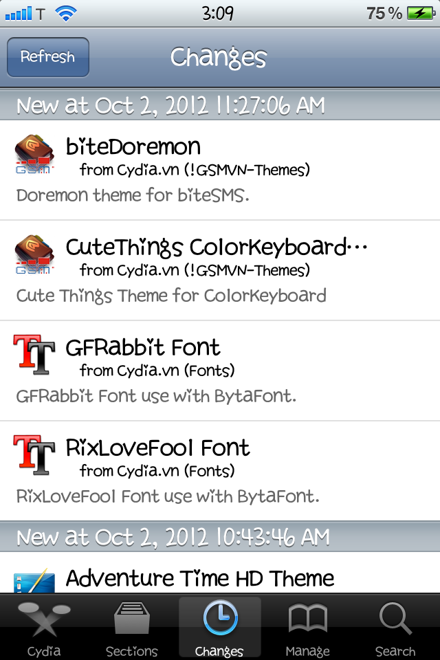 2. Vào Cydia – Changes – bấm Refresh và chờ khi nào Cydia báo Reloading Data xong…