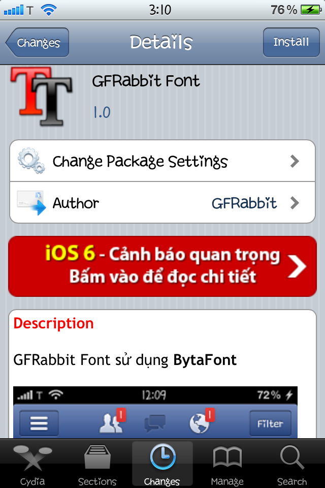 BytaFont – chọn một trong 2 font đã cài ở trên – Respring lại máy.