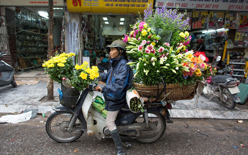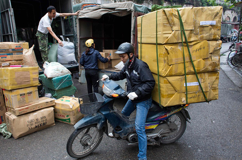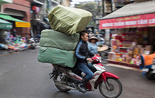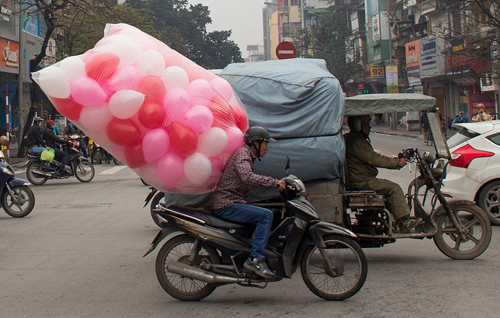 Trong chuyến du lịch tới Việt Nam, nhiếp ảnh gia Ton Keone chụp khá nhiều bức ảnh về những người dân địa phương di chuyển trên đường phố, phía sau họ là các vật dụng cồng kềnh. |