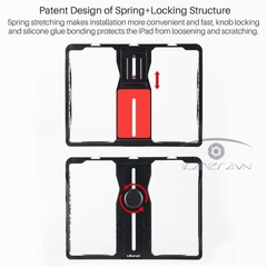 Thiết kế gài iPad với cấu trúc lò xo và khóa vặn: Kéo dài lò xo giúp cài đặt thuận tiện và nhanh chóng hơn, khóa núm và liên kết keo silicon bảo vệ iPad khỏi bị lỏng và trầy xước.