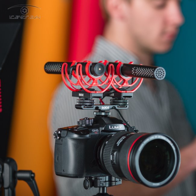 Bạn cũng sẽ cần một thứ gì đó để gắn mic của mình vào, chẳng hạn như RØDE DCS-1. Đây là một thanh giữ có ngàm cold shoe kép rất tiện dụng để bạn gắn 2 micro (hoặc bất kì phụ kiện nào) vào cold shoe của máy ảnh.