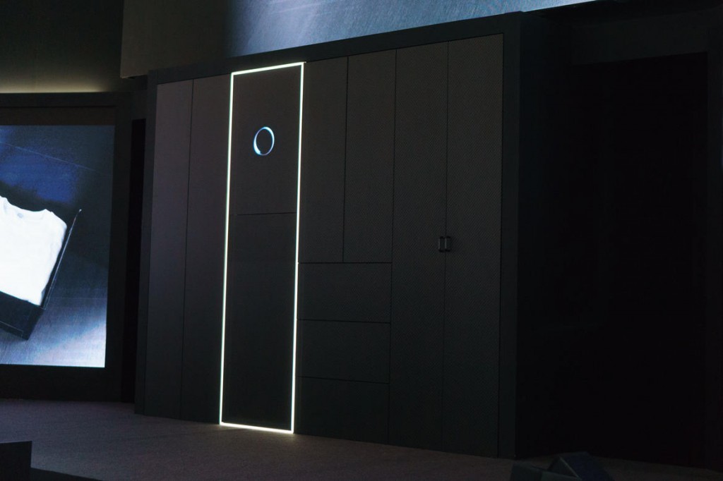 Phiên bản thử nghiệm của chiếc máy khá đẹp mắt, được lắp đặt đồng bộ với một bộ tủ quần áo phục vụ việc giặt là