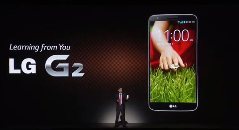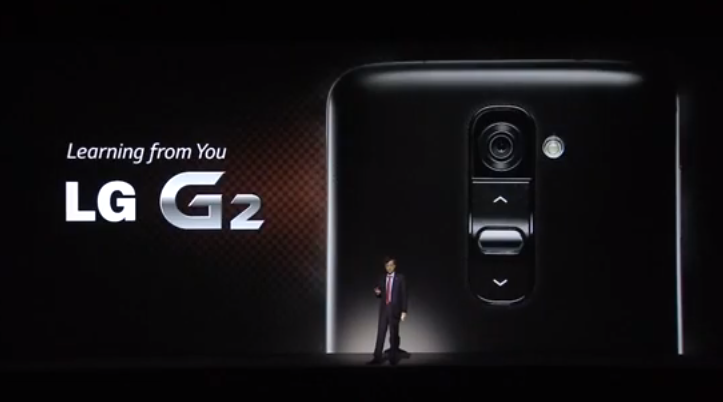 Cuối cùng thì vũ khí bí mật mà ai cũng đã biết của LG đã được chính thức giới thiệu với tên gọi G2. Từ đầu đến cuối buổi giới thiệu, LG nhấn mạnh vào triết lý "học hỏi từ bạn", lấy cảm hứng từ hành vi, thói quen người dùng mà G2 có một thiết kế rất độc đáo. Điểm đặc biệt nhất đó là cụm phím bấm truyền thống như power, tăng giảm volume đã được hãng đặt ở phía sau, phần nắp lưng phía dưới camera của G2, vị trí mà ngón trỏ chúng ta hay đặt vào mỗi khi cầm điện thoại. Không những tập trung vào thiết kế, lần này G2 còn được LG đánh mạnh vào chất lượng camera với khả năng chống rung quang học cũng như trải nghiệm âm thanh chất lượng phòng thu, đạt chuẩn 24bit/192KHz