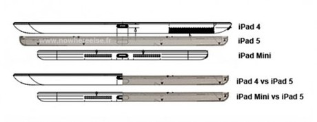 Bức ảnh rò rỉ được cho là ảnh thiết kế của iPad 5 đã vừa được tiết lộ cho thấy ngoại hình giống với iPad mini về các cạnh bên. Ngoài ra, iPad 5 vẫn sẽ được trang bị màn hình cảm ứng kích thước 9,7 inch nhưng kích thước tổng thể lại nhỏ hơn so với iPad 4.