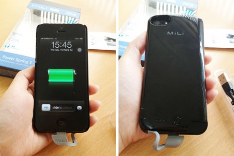 MiLi Power Spring 5 tích hợp cổng 8 chân cho cáp Lightning kiểu mới của iPhone 5. Với phụ kiện này, thời gian sử dụng của iPhone 5 lên đến 8,3 giờ nếu dùng 3G và 18,2 gi ờvới mạng 2G, thời gian nghe nhạc khoảng 50 giờ, xem video khoảng 16 giờ...