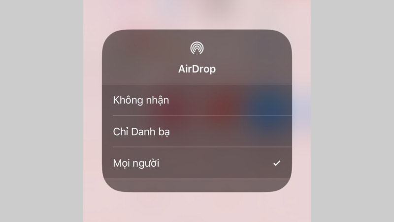 Chế độ hiển thị có ba lựa chọn đó là không nhận, chỉ danh bạ, mọi người. Có thể bạn đã chọn sai đối tượng AirDrop