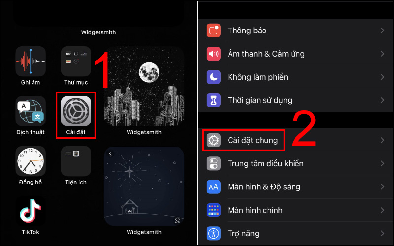 Bước 1: Nhấn vào ứng dụng Cài đặt > Chọn cài đặt chung.