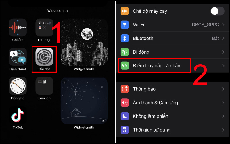 Bước 1: Vào ứng dụng Cài đặt > Chọn mục Điểm truy cập cá nhân.