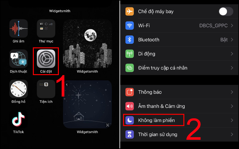 Bước 1: Nhấn vào ứng dụng Cài đặt > Chọn chế độ Không làm phiền.