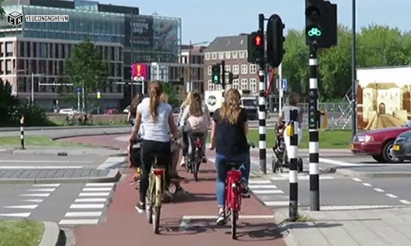 Phần đường dành riêng cho xe đạp và người đi bộ với đèn tín hiệu riêng.