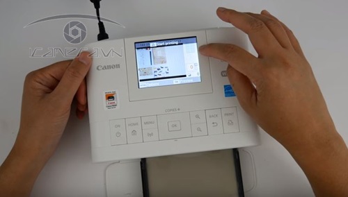 - Giấy in khổ 10 x 15cm, có nhiều chế độ phân chia khổ ảnh in trên menu. Giấy kháng nước, bụi.