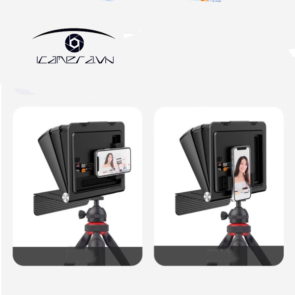 Vì vậy giải pháp gọn nhẹ hơn và cũng tiết kiệm chi phí hơn đó là lựa chọ các loại máy nhắc chữ mini có thể sử dụng với điện thoại. Các loại máy nhắc chữ này thường có kích thước nhỏ gọn và lắp đặt đơn giản, sử dụng chính những chiếc điện thoại hay tablet để chạy chữ. Xin giới thiệu đến các bạn bộ sản phẩm . Máy nhắc chữ Teleprompter LensGo TC7 II là một phiên bản nhắc chữ mini cải tiến dễ sử dụng .