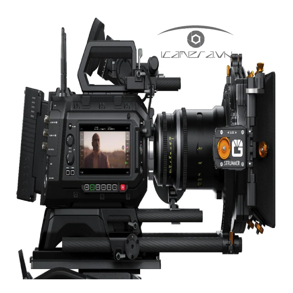 URSA Cine được thiết kế để đáp ứng các yêu cầu khắt khe của mọi sản xuất phim cao cấp. Thân máy có trọng lượng phân bổ đều, được chế tạo từ khung hợp kim magie siêu bền và lớp vỏ composite polycarbonate sợi carbon nhẹ giúp bạn dễ dàng di chuyển nhanh chóng trên phim trường. Các nút bấm có đèn nền cảm ứng mềm giúp thao tác dễ dàng trong mọi điều kiện. Màn hình cảm ứng 5 inch gập lại cho phép xem lại cảnh quay và truy cập cài đặt camera, bên cạnh camera còn có trạm hỗ trợ chuyên dụng với màn hình LCD 5 inch và các nút điều khiển camera đầy đủ! Các đầu nối Lemo và Fischer tiêu chuẩn cho phép bạn điều khiển camera từ xa đồng thời cung cấp nguồn điện cho động cơ ống kính và các phụ kiện khác. Bạn cũng có được đầu ra 12G-SDI, Ethernet 10G, USB-C, âm thanh XLR và nhiều thứ khác nữa!