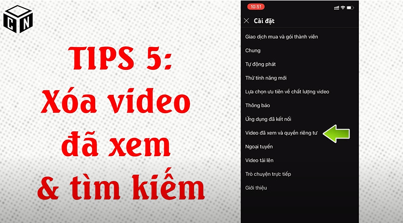 5. Xóa các video và Xóa tìm kiếm