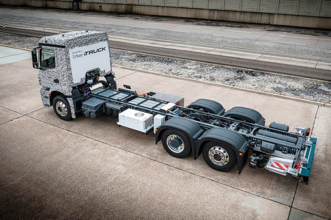 Mercedes-Benz dự kiến sẽ cắt giảm chi phí liên quan đến pin và sớm có biện pháp cải thiện từ nay tới trước năm 2025. Mỗi một mẫu Urban eTruck sở hữu 3 mô-đun pin Lithium-ion cỡ lớn với tổng công suất 212 KWh, mức công suất đủ cung cấp khả năng di chuyển lên tới 200 km/lần sạc. Đặc biệt, Mercedes-Benz cho biết người dùng hoàn toàn có thể nâng cấp thêm mô-đun pin nếu muốn tăng phạm vi hoạt động.