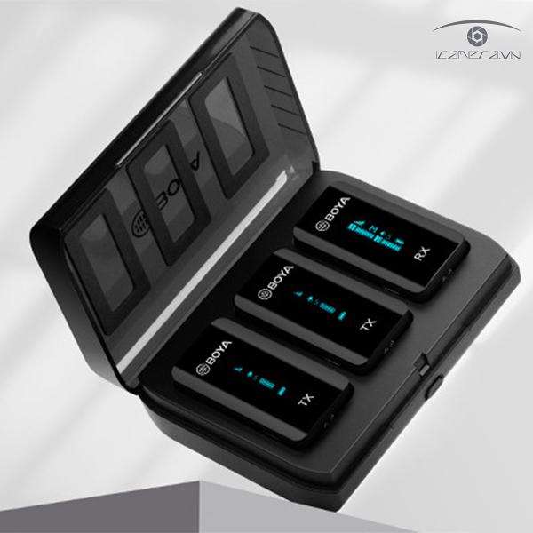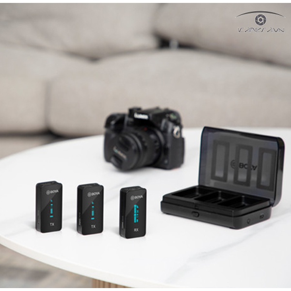BOYA BY-XM6-S2, hệ thống micrô không dây kênh đôi 2,4 GHz, bao gồm hai bộ phát và một bộ thu. Đây là giải pháp thu và phân phối âm thanh hoàn hảo cho vlog hai người, video YouTube, phát trực tiếp, phỏng vấn, ghi âm, v.v.