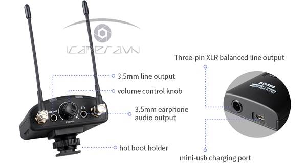 Bộ ACEMIC–DV-500 tương tích với các loại camera, DSLR, điện thoại, máy tính, bút thu âm, station thu âm, bàn trộn, vv...