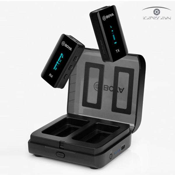 BOYA BY-XM6-S1, một hệ thống micrô không dây nhảy tần thích ứng 2,4GHz, bao gồm một bộ phát và một bộ thu. Đây là giải pháp thu và phân phối âm thanh hoàn hảo cho vlog của một người, video YouTube, phát trực tiếp, phỏng vấn, ghi âm, v.v.