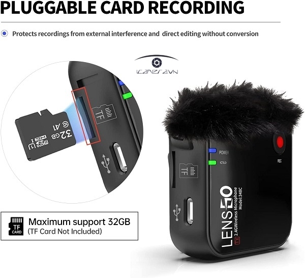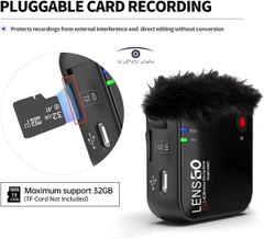 LensGo LWM-348C Single còn có hỗ trợ thẻ nhớ TF, tối đa 32GB lên thiết bị nhận để lưu trữ bản ghi âm theo thời gian thật, tránh mất tiếng trong quá trình quay do mất sóng hoặc nhiễu tín hiệu.
