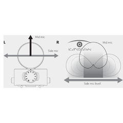 Sự sắp xếp này cho phép kỹ thuật ghi âm "mặt giữa" trong đó các tín hiệu từ trung tâm và âm thanh xung quanh từ các mặt có thể được kết hợp để làm cho hình ảnh âm thanh nổi hẹp hơn hoặc rộng hơn. Nó phù hợp với mọi thứ từ ghi âm buổi hòa nhạc trực tiếp, ghi âm trong phòng thu, buổi tập và phát sóng truyền hình.