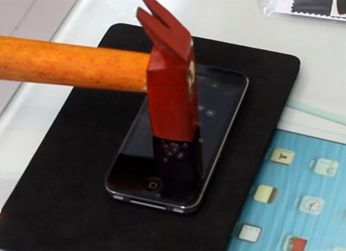 Sau khi dán iPhone chịu được lực đập mạnh từ búa.