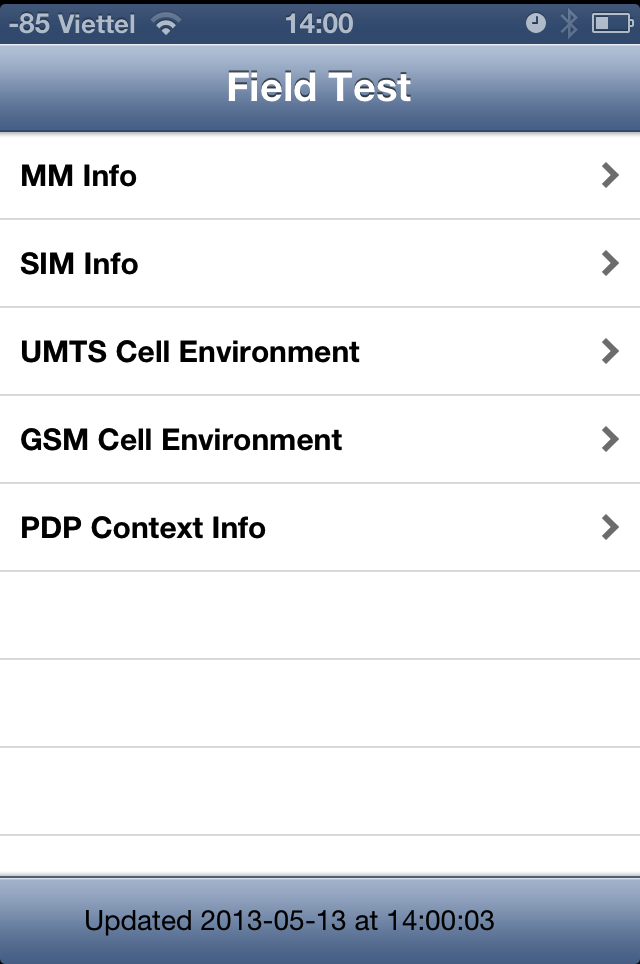 3. Lúc này bạn sẽ thấy là phần hiển thị sóng của điện thoại của bạn là một số âm, đây chính là biểu hiện cường độ sóng điện thoại của bạn, số này càng lớn thì sóng càng mạnh (-dBm). (Đây là số âm nên càng lớn thì số sau dấu - phải càng nhỏ nhe các bạn, kiến thức cơ bản lớp 5). Vấn đề là khi tắt Field Test, cột sóng của bạn sẽ quay về như cũ, vậy bạn phải làm theo như mình nói để nó ở đó luôn