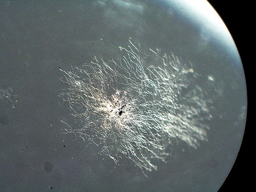 Thông thường, những đoạn nấm (thường được cộng đồng gọi là "mốc rễ tre" vì kiểu dáng của chúng) mà mắt thường có thể nhìn thấy trên ống kính chính là rễ của chúng.