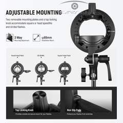NEEWER CRB1 được tích hợp với ngàm Bowens để dễ dàng gắn các bộ điều chỉnh ánh sáng, chẳng hạn như hộp mềm, tấm phản xạ, đĩa làm đẹp, ống ngắm, v.v., vào đèn flash speedlite của bạn. Ngoài ra có thể gắn giá đỡ lên chân đèn, hoặc đơn giản là cầm tay để dễ dàng thao tác. Lỗ được chỉ định 0,35″/9mm để giữ chặt những chiếc ô mềm.