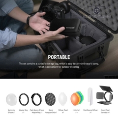 Neewer GM-M1 rất cần thiết để kiểm soát tốt hơn nguồn sáng đèn nháy Z1 hoặc Z2 nhằm tạo ra hiệu ứng đèn nháy mềm mại. Sử dụng cửa chuồng bốn tấm, lưới tổ ong và bộ khuếch tán mái vòm để kiểm soát sự lan truyền ánh sáng. Áp dụng bảng khuếch tán và bộ khuếch tán phản xạ để khuếch tán ánh sáng. Một bộ gel màu cũng được bao gồm để biến đèn có ánh sáng màu rực rỡ