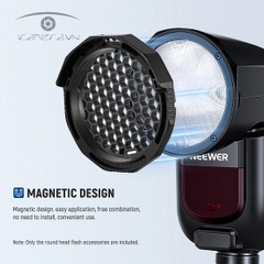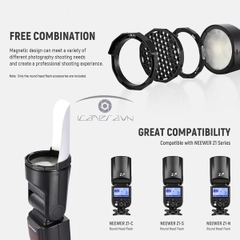 NEEWER GM-M1 Với lực từ mạnh, các phụ kiện có thể được gắn dễ dàng và chắc chắn lên đầu đèn flash Z1 hoặc Z2. Gắn trực tiếp cửa chuồng, lưới tổ ong và bộ khuếch tán dạng vòm và chúng sẽ bị hút từ tính. Trước tiên hãy kết nối bảng khuếch tán, gel màu và bộ khuếch tán phản xạ với vòng bộ chuyển đổi từ tính đi kèm, sau đó gắn chúng vào đầu đèn flash