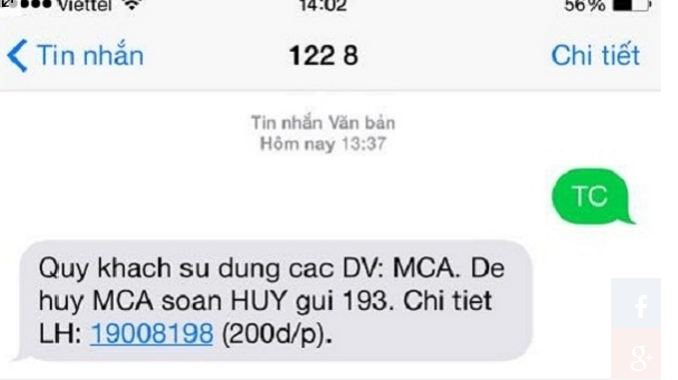 Viettel: soạn tin nhắn cú pháp TC gửi 1228