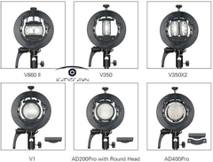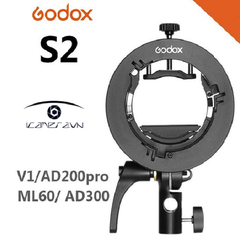 Godox Type-S2 sử dụng ngàm Bowens để kết nối với các thiết bị và phụ kiện, là dòng sản phẩm chất lượng, đa năng chuyên nghiệp dành cho đèn Flash Speedlite. Sản phẩm thay thế cho hầu hết các loại gá đèn thông dụng hiện nay đặc biệt là các loại flash đầu tròn như V1, AD400pro, AD200 pro Sử dụng được cho nhiều kích cỡ đèn Flash khác nhau.