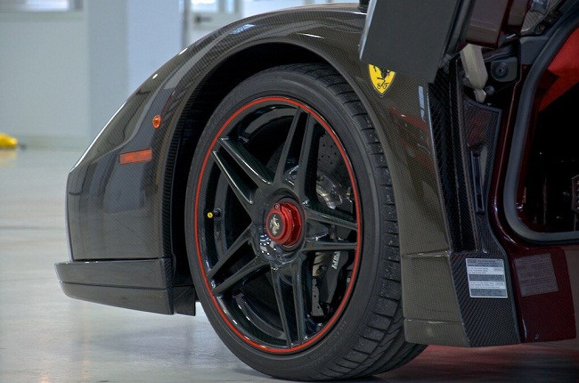 Để đồng bộ, siêu xe Ferrari Enzo độ sử dụng vành bánh xe O-Z 21 inch bằng sợi carbon siêu nhẹ, hệ thống phanh carbon ceramic từ Brembo và hệ thống lốp Michelin Pilot Race. Cụm ống xả titan được nâng cấp cho âm thanh dầy uy lực và độ vang lớn. Động cơ V12 cũng có những tùy chỉnh để đạt công suất mạnh hơn.