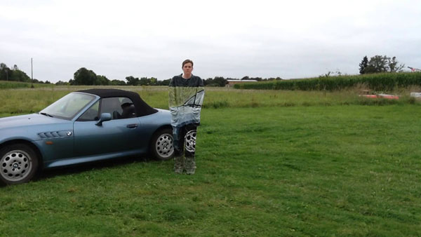 Bức hình mang tên “I can’t see BMW” – “Tôi không thể thấy chiếc BMW”, lời tựa đầy hài hước khi ông sử dụng anh bạn hàng xóm làm người mẫu để mặc bộ quần áo đặc biệt, đã được ông vẽ màu lên.