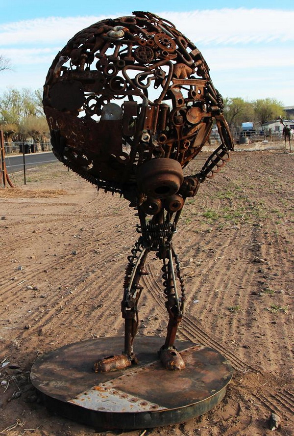 Đầu của chú châu chấu này đến từ trang trại John Wayne và cơ thể/chân sau là phanh và các bộ phận ly hợp từ một chiếc xe tải Ford 1939