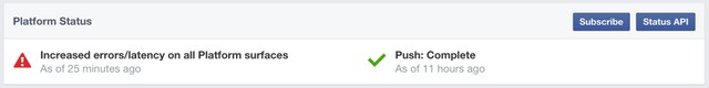 Trên trang web dành cho nhà phát triển của Facebook hiển thị một status thông báo lỗi cho biết toàn bộ hệ thống của họ đang gặp lỗi về hàm API và web. Các kỹ sư đã phát hiện ra vấn đề nhanh chóng và cố gắng giải quyết trong thời gian nhanh nhất có thể.