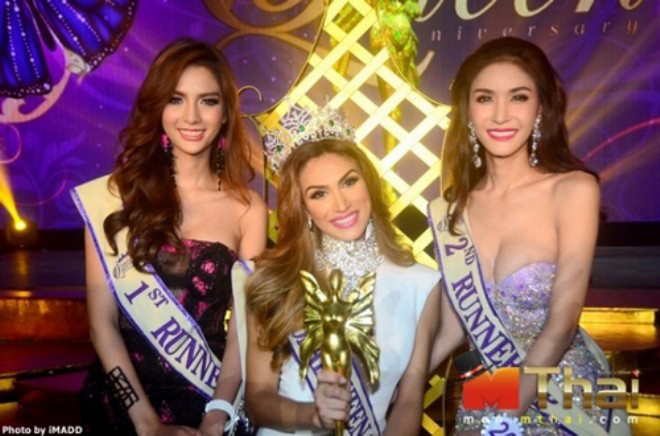 Trước khi tham gia Miss International Queen 2014, cô gái người Thái Lan từng là hoa hậu cuộc thi dành cho người chuyển giới tại quê nhà - Miss Tiffany’s Universe 2014. Trong ảnh là giây phút đăng quang đầy xúc động của Nitsa.