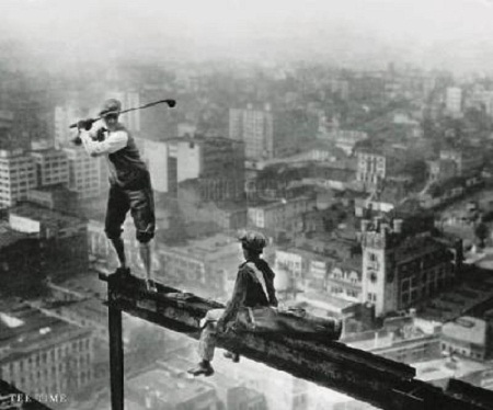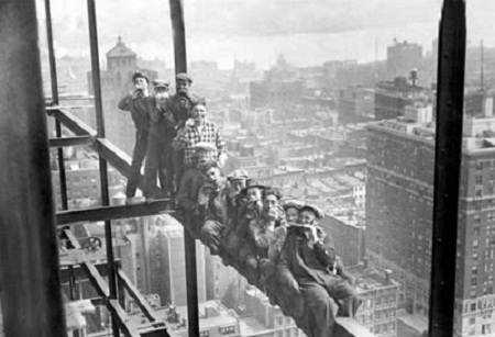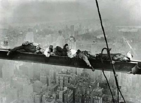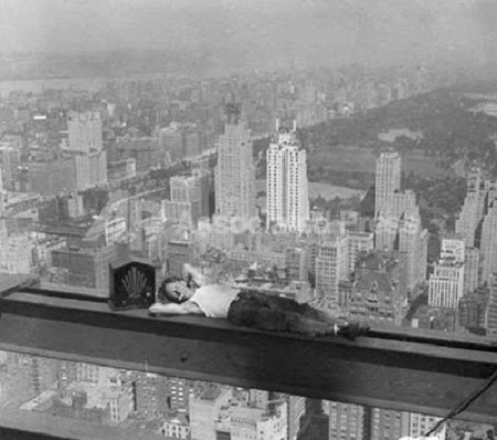 Đây là một trong những bức ảnh nổi tiếng nhất trong lịch sử của thành phố New York. Mỹ. Những bức ảnh mô tả 11 người công nhân cảm thấy rất thoải mái khi họ cùng nghỉ ngơi, ăn trưa, giải trí... tất cả trên những thanh thép (mà không có sự bảo vệ nào) ở tầng 69 của Trung tâm Rockefeller.